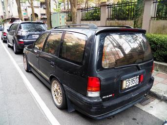 Keywords: Nissan AD Resort 1.6 Wagon Left Rear View in Songshan District, Taipei 20130316.jpg zh-tw 裕隆製日產AD Resort 1 6旅行車左後方, 於臺北市 山 Own 玄史生 2013-03-16 Nissan AD Y10 Black station wagons Yulon Motor 玄史生写 文庫 Taken with Kodak EasyShare Z990 Cc-zero