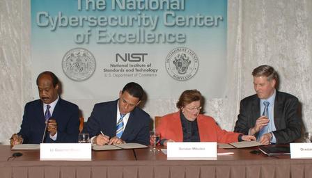 | Keywords: NIST Launches New Collaborative Center for Cybersecurity (6774265866).jpg The State of Maryland and Montgomery County Md partner with NIST in the New National Cybersecurity Center of Excellence At the Memorandum of Understanding Signing Feb 21 from left to right Montgomery County Executive Isiah Leggett Maryland Lt Governor Anthony Brown U S Senator for Maryland Barbara Mikulski and Under Secretary of Commerce for Standards and Technology and NIST Director Patrick Gallagher See also http //www nist gov/itl/csd/nccoe-022112 cfm www nist gov/itl/csd/nccoe-022112 cfm Credit NIST Disclaimer Any mention of commercial products within NIST web pages is for information only; it does not imply recommendation or endorsement by NIST Use of NIST Information These World Wide Web pages are provided as a public service by the National Institute of Standards and Technology NIST With the exception of material marked as copyrighted information presented on these pages is considered public information and may be distributed or copied Use of appropriate byline/photo/image credits is requested https //www flickr com/photos/usnistgov/6774265866/ NIST Launches New Collaborative Center for Cybersecurity 2012-02-21 12 35 https //www flickr com/people/63059536 N06 National Institute of Standards and Technology PD-USGov National Institute of Standards and Technology https //flickr com/photos/63059536 N06/6774265866 2016-09-07 02 13 01 United States Government Work Uncategorized 2016 December 20 |