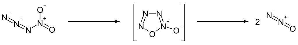 Keywords: Nitryl azide reaction 01.svg en Decomposition of Nitryl azide de Zerfall von Nitrylazid own Steffen 962 2012-10-06 PD-chem Nitryl azide Cc-zero