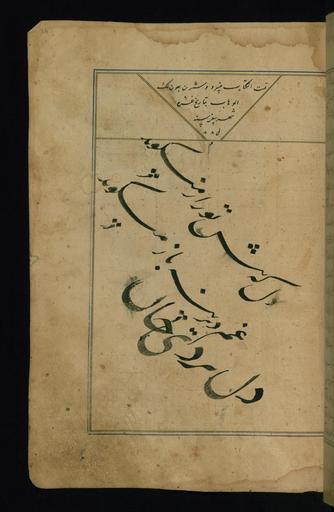 | Keywords: Nizami Ganjavi - Colophon - Walters W60496A - Full Page.jpg This folio from Walters manuscript W 604 contains 1 of 4 short colophons in Arabic at the end of Makhzan al-asrar dated Ramadan 885 Khusraw va Shirin dated 1st Safar 885 Laylá va Majnun dated 5 Rabi' I 886 and Haft paykar dated 22 Ramadan 885 The name of the scribe is not recorded islamic 1481 885-886 Timurid ink pigments laid paper cm 23 5 16 accession number W 604 96A 83218 Henry Walters Baltimore date and mode of acquisition unknown Walters Art Museum Henry Walters Acquired by Henry Walters Transliteration place of origin Iran Walters Art Museum license 2D Khamsa of Nizami Timurid Walters MS 604 Layla and Majnun Walters Art Museum Seven beauties Leyli and Majnun Nizami Ganjavi |