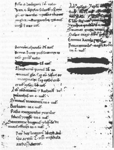 Keywords: NKP XXIII E 21 fol 170v Bibliothekskatalog.jpg Prag Národní knihova XXIII E 21 Lobkowitz 469 ehemals Kloster Weißenau fol 170v unvollständiger Bibliothekskatalog Elke Wenzel Die mittelalterliche Bibliothek der Abtei Weißenau Lang Frankfurt am Main 1998 ISBN 3-631-32206-2 century 13 anonymous PD-old-100 NKP XXIII E 21 Library cataloging and classification |