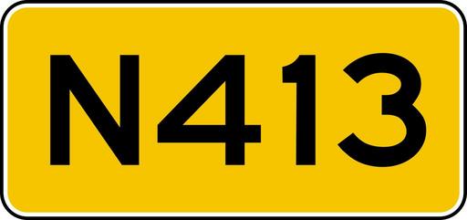 | Keywords: NLD-N413.svg en Netherlands provincial highway shield nl Provincionale weg/rijksweg schild pl Tabliczka holenderskiej drogi prowincjonalnej/autostrady own 2015-01-21 Fredddie PD-NL-verkeersbord Diagrams of national and provincial road number signs of the Netherlands |