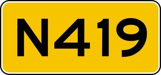 | Keywords: NLD-N419.svg en Netherlands provincial highway shield nl Provincionale weg/rijksweg schild pl Tabliczka holenderskiej drogi prowincjonalnej/autostrady own 2015-01-21 Fredddie PD-NL-verkeersbord Diagrams of national and provincial road number signs of the Netherlands |