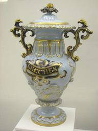 Keywords: NMAH DC - IMG 8745.JPG Leech jar 1800-1850 Exhibit in National Museum of American History Washington DC USA I took this photograph 2011-01-18 15 08 51 Daderot Public domain Ceramics in the National Museum of American History Leech jars