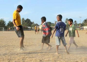 | Keywords: NMCB 3 Pacific region deployment 130830-N-ZZ999-001.jpg en Builder 3rd Class Roberto Vega from Naval Mobile Construction Battalion 3's Timor-Leste Civic Construction Action Detail plays soccer with local Timorese children during a day-long sports exchange with the local community Seabees were joined by sailors from USS Denver who participated in the sports exchange during a four-day port visit to East Timor The CCAD's mission is to execute engineering civic assistance projects conduct formal training with the host nation and perform community relations events to help enhance shared capabilities and improve the country's social welfare One of the first battalions commissioned during World War II NMCB 3's legacy stands strong in its ability to build and fight anywhere in the world as either a full battalion or as a group of autonomous detachments simultaneously completing critical engineering and construction missions For this deployment NMCB 3 has split into 9 details to perform critical construction projects in remote island areas such as Timor-Leste Tonga Cambodia and the Philippines The teams will also conduct operations in Atsugi Yokosuka and Okinawa Japan; Chinhae Republic of Korea and China Lake Calif The Naval Construction Force is a vital component of the U S Maritime Strategy They provide deployable battalions capable of providing disaster preparation and recovery support humanitarian assistance and combat operations support NMCB 3 provides combatant commanders and Navy component commanders with combat-ready warfighters capable of general engineering construction and limited combat engineering across the full range of military operations 2013-08-30 NMCB https //www dvidshub net/image/1010262 130830-N-ZZ999-001 2013-09-05 02 12 DILI TL PD-USGov-Military-Navy Images from US Navy location Dili East Timor Naval Mobile Construction Battalion 3 Images from DoD uploaded by Fæ |