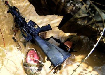 | Keywords: NMCB 3 Pacific region deployment 130922-N-VN372-093.jpg en Naval Mobile Construction Battalion 3 Utilitiesman 2nd Class Raymond Luckett coasts inches above the water as a member of his squad uses her boot to keep Constantine wire away from his face during a six-hour endurance course at the Marine Corps Jungle Warfare Training Center More than 60 NMCB 3 Seabees attended the eight-day JWTC course The training helped sustain the battalion's overall readiness as the Pacific region's primary forward-deployed construction battalion prepared to provide conventional combat counterinsurgency and irregular warfare capabilities One of the first battalions commissioned during World War II NMCB 3's legacy stands strong in its ability to build and fight anywhere in the world as either a full battalion or as a group of autonomous detachments simultaneously completing critical engineering and construction missions For this deployment NMCB 3 has split into nine details to perform critical construction projects in remote island areas such as Timor-Leste Tonga Cambodia and the Philippines The teams will also conduct operations in Atsugi Yokosuka and Okinawa Japan Chinhae Republic of Korea and China Lake Calif The naval construction force is a vital component of the U S maritime strategy They provide deployable battalions capable of providing disaster preparation and recovery support humanitarian assistance and combat operations support U S Navy photo by Mass Communication Specialist 1st Class Chris Fahey Naval Mobile Construction Battalion 3 Public Affairs Lead/RELEASED 2013-09-22 Petty Officer 1st Class Chris Fahey https //www dvidshub net/image/1023755 130922-N-VN372-093 2013-09-23 04 51 OKINOWA JP PD-USGov-Military-Navy Naval Mobile Construction Battalion 3 Images from DoD uploaded by Fæ |