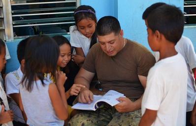 | Keywords: NMCB 5's CCAD Philippines continue building relationships with Palawan locals 130211-N-ZZ999-549.jpg en Steelworker 1st Class Angel Cano from El Paso Texas assigned to Naval Mobile Construction Battalion 5's Construction Civic Action Detail Philippines reads a story to the third-grade students of Aplaya Elementary School Most of the Seabees spend their lunch break interacting and building rapport with local schoolchildren CCAD Philippines is constructing a two-classroom masonry building for the Aplaya Elementary School Seabees conduct CCAD operations like this one in order to demonstrate U S commitment develop enduring relationships improve public infrastructure for the delivery of essential services and strengthen local institutions with host and partner nations around the world 2013-02-11 U S Navy photo by Construction Electrician Constructionman Quennie May Bumatay/Released https //www dvidshub net/image/869563 130211-N-ZZ999-549 2013-02-19 13 30 PUERTO PRINCESA PH PD-USGov-Military-Navy El Paso Texas in the 2010s Images from DoD uploaded by Fæ |