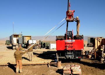 | Keywords: NMCB 7 at Forward Operating Base Mescall 120229-N-SD610-005.jpg en Seabees assigned to Naval Mobile Construction Battalion 7 ™s Water Well Detachment guide a cement mixer as it is lowered from a well-tender vehicle at the detachment ™s drill site at Forward Operating Base Mescall NMCB 7 and its detachments are one of two Seabee battalions conducting contingency construction and deconstruction in support of the International Security Assistance Force as part of Task Force Stethem operating in the U S Central Command area of operation 2012-02-29 Chief Petty Officer Yan Kennon https //www dvidshub net/image/535667 120229-N-SD610-005 2012-03-05 22 33 ZABUL PROVINCE AF PD-USGov-Military-Navy Zabul Province Images from DoD uploaded by Fæ |