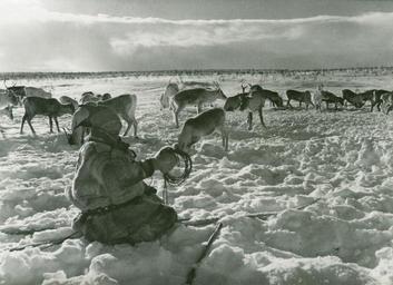 | Keywords: elisabeth meyer elisabethmeyer landscapes documentary photography documentaryphotography costumes sami indigenous people indigenouspeople meyer outdoor Meyer, Elisabeth Sami with herd of reindeer at their winter feeding ground, Finnmarksvidda. Gelatin silver print, baryta NMFF.002541-3 Meyer, Elisabeth Sami with herd of reindeer at their winter feeding ground, Finnmarksvidda. Gelatin silver print, baryta NMFF.002541-3 | ||||