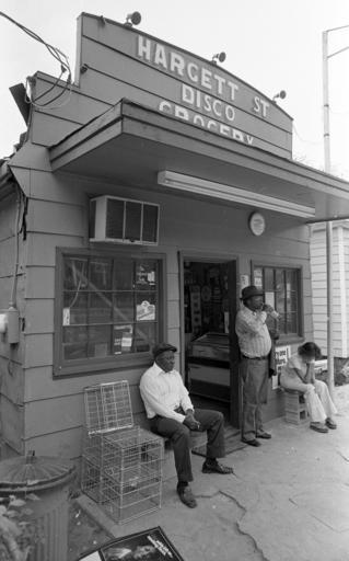 | Keywords: blackandwhite monochrome outdoor black and white Hargett Street Disco Grocery, Raleigh, NC, 25 April 1979. COPYRIGHT RALEIGH NEWS & OBSERVER. ILLEGAL TO USE WITHOUT PERMISSION FROM THE N&O NEWSPAPER. Address is 712 East Hargett Street, Raleigh, NC. Hargett Street Disco Grocery, Raleigh, NC, 25 April 1979. COPYRIGHT RALEIGH NEWS & OBSERVER. ILLEGAL TO USE WITHOUT PERMISSION FROM THE N&O NEWSPAPER. Address is 712 East Hargett Street, Raleigh, NC. | ||||