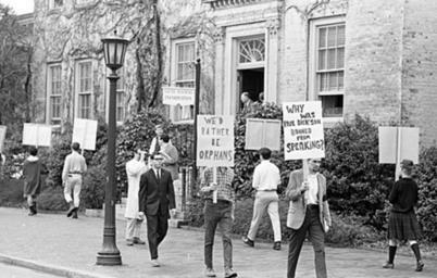 Keywords: blackandwhite monochrome outdoor black and white On June 26, 1963, the North Carolina General Assembly passed the Act to Regulate Visiting Speakers, later known as the Speaker Ban Law. The law forbade anyone to speak on a University of North Carolina campus who was a known member of the Communist Party, was known to advocate overthrow of the United States Constitution, or had invoked the Fifth Amendment in respect of communist or "subversive" connections. The law was rushed through in the closing hours of the legislative session with virtually no debate. Governor Terry Sanford was against the Speaker Ban bill, but at that time the governor of North Carolina could not veto legislation. In the wake of the passage of this law, the communities on the UNC campuses rose up in protest. Students, faculty, and community members protested the law and what it represented over the course of the next several years. A number of complex issues involving many key North Carolina political figures and national leaders kept the controversy very active and widely debated through the mid-1960's. In 1965, the North Carolina General Assembly established a commission to look into the consequenses of the law and recommend either ammedment or repeal of the law. The commission held public hearings in August and September of 1965 and in November amended the law absolving the state legislature from having to make rulings on who could speak on campuses and who could not and returning effective control over those issues to the universities. (Speaker Ban Law Study Commission records are held by the State Archives of North Carolina; finding aid is online www.archives.ncdcr.gov/findingaids/pdf/sa_speaker_ban_law...). In 1966 students at the University of North Carolina at Chapel Hill led by Student Body President Paul Dickson invited Herbert Aptheker and Frank Wilkinson ('known' Communists) to speak on the campus. As expected, the university refused to allow either of the speakers to give their speeches on campus. Instead, they addressed the assembled crowd on March 2, 1966, from across the stone wall that separates the university from the town of Chapel Hill. Ultimately a federal law suit against the university and the State of North Carolina was filed by UNC students. On February 19, 1968, after two years of consideration by the Federal District Court in Greensboro, Dickson, et al. v Sitterson, et al. was decided for the plaintiffs -- the court's opinion found the Speaker Ban law and policy unconstitutional. For more information on the Speaker Ban Law, its complexities, and surrounding events, please see this online exhibit and collection www.lib.unc.edu/mss/exhibits/protests/ban.html, NCpedia entry ncpedia.org/speaker-ban-law, and www.northcarolinahistory.org/commentary/187/entry/, used in the drafting of the above description of this set of images. COPYRIGHTED BY THE RALEIGH NEWS AND OBSERVER NEWSPAPER. DO NOT USE OR PUBLISH WITHOUT EXPRESSED CONSENT FROM THE N&O. On June 26, 1963, the North Carolina General Assembly passed the Act to Regulate Visiting Speakers, later known as the Speaker Ban Law. The law forbade anyone to speak on a University of North Carolina campus who was a known member of the Communist Party, was known to advocate overthrow of the United States Constitution, or had invoked the Fifth Amendment in respect of communist or "subversive" connections. The law was rushed through in the closing hours of the legislative session with virtually no debate. Governor Terry Sanford was against the Speaker Ban bill, but at that time the governor of North Carolina could not veto legislation. In the wake of the passage of this law, the communities on the UNC campuses rose up in protest. Students, faculty, and community members protested the law and what it represented over the course of the next several years. A number of complex issues involving many key North Carolina political figures and national leaders kept the controversy very active and widely debated through the mid-1960's. In 1965, the North Carolina General Assembly established a commission to look into the consequenses of the law and recommend either ammedment or repeal of the law. The commission held public hearings in August and September of 1965 and in November amended the law absolving the state legislature from having to make rulings on who could speak on campuses and who could not and returning effective control over those issues to the universities. (Speaker Ban Law Study Commission records are held by the State Archives of North Carolina; finding aid is online www.archives.ncdcr.gov/findingaids/pdf/sa_speaker_ban_law...). In 1966 students at the University of North Carolina at Chapel Hill led by Student Body President Paul Dickson invited Herbert Aptheker and Frank Wilkinson ('known' Communists) to speak on the campus. As expected, the university refused to allow either of the speakers to give their speeches on campus. Instead, they addressed the assembled crowd on March 2, 1966, from across the stone wall that separates the university from the town of Chapel Hill. Ultimately a federal law suit against the university and the State of North Carolina was filed by UNC students. On February 19, 1968, after two years of consideration by the Federal District Court in Greensboro, Dickson, et al. v Sitterson, et al. was decided for the plaintiffs -- the court's opinion found the Speaker Ban law and policy unconstitutional. For more information on the Speaker Ban Law, its complexities, and surrounding events, please see this online exhibit and collection www.lib.unc.edu/mss/exhibits/protests/ban.html, NCpedia entry ncpedia.org/speaker-ban-law, and www.northcarolinahistory.org/commentary/187/entry/, used in the drafting of the above description of this set of images. COPYRIGHTED BY THE RALEIGH NEWS AND OBSERVER NEWSPAPER. DO NOT USE OR PUBLISH WITHOUT EXPRESSED CONSENT FROM THE N&O.