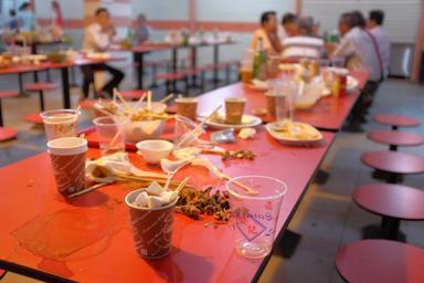 Keywords: chinatown complex used disposable cutlery mess left behind night 2014 singapore public domain publicdomain dining table dinner table table Chinatown Complex Chinatown Complex