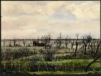 | Keywords: university of victoria universityofvictoria uvic great britain. army. royal regiment of artillery greatbritainarmyroyalregimentofartillery caricatures and cartoons--20th century caricaturesandcartoons20thcentury notebooks war artists warartists world war, 1914-1918--pictorial works worldwar19141918pictorialworks world war, 1914-1918--caricatures and cartoons worldwar19141918caricaturesandcartoons outdoor photo border serene field landscape skyline Item is one of 123 pen-and-ink drawings and watercolours from two volumes titled: "Sketches of the War: France/Belgium". The sketches vary from satirical cartoons to more detailed and naturalistic renditions. They are often accompanied by an ironic title and are often signed with the artist's initials, "J.M." The artist's satirical targets include the officers and high command of both combatant sides; the disjuncture between reported and actual events, and the death of civilians as a fact of modern warfare. Item is one of 123 pen-and-ink drawings and watercolours from two volumes titled: "Sketches of the War: France/Belgium". The sketches vary from satirical cartoons to more detailed and naturalistic renditions. They are often accompanied by an ironic title and are often signed with the artist's initials, "J.M." The artist's satirical targets include the officers and high command of both combatant sides; the disjuncture between reported and actual events, and the death of civilians as a fact of modern warfare. |