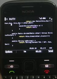 | Keywords: Nokia E5 running PuTTY 1.5.2, on Symbian OS, with Vim syntax Highlighting.jpeg Uploaded with en wp UW marker 2012 08 16 Photo of a Nokia E5 smart phone screen running PuTTY 1 5 2 SSH Client connected to a Ubuntu Linux system which is running the Vim text editor Demonstrates that the Symbian version of PuTTY supports colour terminal Image by Jamesconception 2012 21 March 2010 Release of the version on the photo PuTTY 1 5 2 Simon Tatham and others http //prdownloads sourceforge net/s2putty/putty_users_guide pdf download ;Other information The program is to be shared and modified freely as long as the original Terms from the programmer are shared with it The photograph though is mine and is a simple screenshot cc-by-1 0 Computer science SSH Nokia E5 Linux |