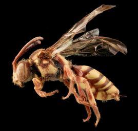 | Keywords: bug bugs bee bees pollinator pollinators animal animals animalia arthropod arthropods arthropoda insect insects insecta hymenoptera aculeata anthophila apoidea cuckoo bee cuckoobee cuckoo bees cuckoobees apidae apinae nomadinae nomada nomada imbricata nomadaimbricata taxonomy:binomial=nomada imbircata taxonomy:binomial=nomadaimbircata biml usgs droege maryland parasite nest parasite nestparasite usgsbiml black background The lovely Nomada imbricata, a bee that looks like a wasp, which, it turns out are all bees really are anyway...modified wasps. In this case this bee has no need to look like a bee since it does not carry pollen nor build its own nest, instead it invades the nests of the large Andrenid bees and lays its eggs in their nest and Ms. imbricata's young kill the host young and eat all their food. Its rough out there. Canon Mark II 5D, Zerene Stacker, 65mm Canon MP-E 1-5X macro lens, Twin Macro Flash, F5.0, ISO 100, Shutter Speed 200, link to a .pdf of our set up is located in our profile The lovely Nomada imbricata, a bee that looks like a wasp, which, it turns out are all bees really are anyway...modified wasps. In this case this bee has no need to look like a bee since it does not carry pollen nor build its own nest, instead it invades the nests of the large Andrenid bees and lays its eggs in their nest and Ms. imbricata's young kill the host young and eat all their food. Its rough out there. Canon Mark II 5D, Zerene Stacker, 65mm Canon MP-E 1-5X macro lens, Twin Macro Flash, F5.0, ISO 100, Shutter Speed 200, link to a .pdf of our set up is located in our profile |