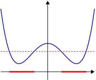 | Keywords: Nonquasiconvex function.png Made by myself with MATLAB graph Source code <pre> function main prepare the scrreen and define some parameters clf; hold on; axis equal; axis off; fontsize 25; thick_line 3; thin_line 2; black 0 0 0; red 1 0 0; arrowsize 0 1; arrow_type 1; arrow_angle 30; angle in degrees L 1 15; X -L 0 01 L ; f inline '2 X 4-X 2+1 -1 3' ; Y f X ; plot X Y 'linewidth' thick_line arrow X 1 0 X length X 0 thin_line arrowsize arrow_angle arrow_type black arrow 0 min Y -0 4 0 max Y +0 2 thin_line arrowsize arrow_angle arrow_type black a 0 5; Z X 0+a; plot X Z 'linewidth' thin_line 'linestyle' '--' 'color' 'r' ; x0 -10; for i 2 length X -1 x X i ; xp X i-1 ; if x < 0 f x < a f xp > a x0 x; elseif x < 0 f x > a f xp < a x1 x; elseif x > 0 f x < a f xp > a x2 x; elseif x > 0 f x > a f xp < a x3 x; end end plot x0 x1 0 0 'linewidth' 2 thick_line 'color' 'r' ; plot x2 x3 0 0 'linewidth' 2 thick_line 'color' 'r' ; saveas gcf 'Nonquasiconvex_function eps' 'psc2' export to eps function arrow start stop thickness arrow_size sharpness arrow_type color Function arguments start stop start and end coordinates of arrow vectors of size 2 thickness thickness of arrow stick arrow_size the size of the two sides of the angle in this picture -> sharpness angle between the arrow stick and arrow side in degrees arrow_type 1 for filled arrow otherwise the arrow will be just two segments color arrow color a vector of length three with values in 0 1 convert to complex numbers i sqrt -1 ; start start 1 +i start 2 ; stop stop 1 +i stop 2 ; rotate_angle exp i pi sharpness/180 ; points making up the arrow tip besides the stop point point1 stop - arrow_size rotate_angle stop-start /abs stop-start ; point2 stop - arrow_size/rotate_angle stop-start /abs stop-start ; if arrow_type 1 filled arrow plot the stick but not till the end looks bad t 0 5 arrow_size cos pi sharpness/180 /abs stop-start ; stop1 t start+ 1-t stop; plot real start stop1 imag start stop1 'LineWidth' thickness 'Color' color ; fill the arrow H fill real stop point1 point2 imag stop point1 point2 color ; set H 'EdgeColor' 'none' else two-segment arrow plot real start stop imag start stop 'LineWidth' thickness 'Color' color ; plot real stop point1 imag stop point1 'LineWidth' thickness 'Color' color ; plot real stop point2 imag stop point2 'LineWidth' thickness 'Color' color ; end </pre> convexity functions Files by User Oleg Alexandrov from en wikipedia math |