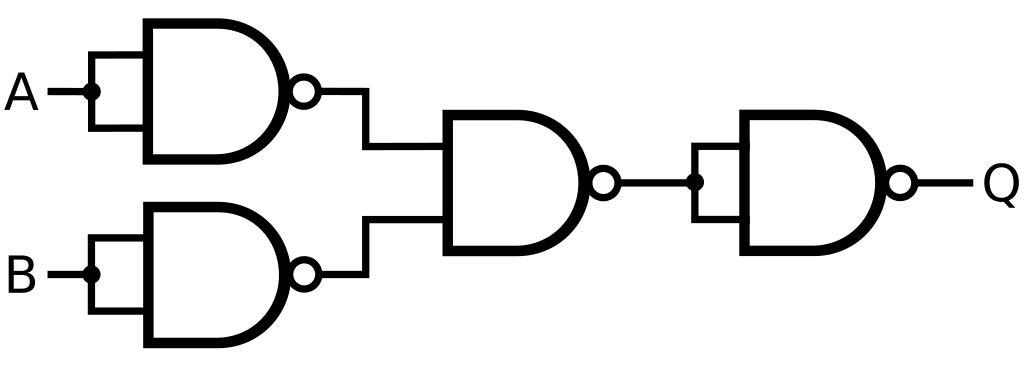 Keywords: NOR from NAND.svg NOR gate from only NAND gates Own Inductiveload 2009-01-16 Alternative logic gates NAND gate symbols NOR gates