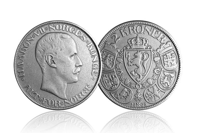 Keywords: Norgesnasjonalmynt.JPG en Haakon VII 2 krone 1908 Samlerhuset Samlerhuset 2009-08 my own work - publised in www samlerhuset no Haakon VII Coins