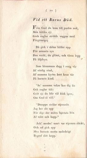 Keywords: Norrlands-Blommor p10.jpg sv Vid ett barns död ur Norrlands-Blommor af --dt Elias Sehlstedt 1832 Norrlands-Blommor af --dt 1832 --dt Elias Sehlstedt 1832 skannad från original av mig PD-old Norrlandsblommor