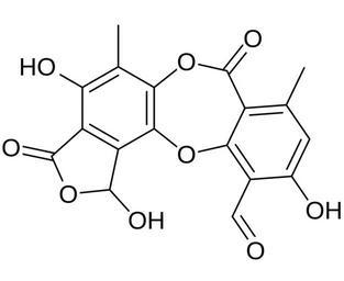 Keywords: Norstictic acid.svg Chemical structure of norstictic acid Own 00 45 2 November 2014 UTC Ed Edgar181 Lactones Phenols