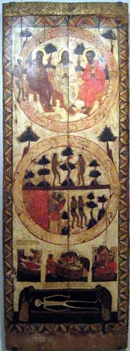 | Keywords: North door of iconostasis.jpg Севе ная две ь иконостаса Лоно Ав аама Адам и Ева в аю Изгнание из ая п итча об исхождении души п аведника и г ешника North door of iconostasis Abraham's Bosom Adam and Eve in Eden Banishment from the Eden; Parable about the souls of Righteous Man and of a Sinner; Saint Sisoes the Great at the tomb of Alexander the Great own own photo century 16 anonimous N Novgorod <gallery>image North door of iconostasis v 1 jpg image North door of iconostasis v 2 jpg image North door of iconostasis v 3 jpg </gallery> PD-Art Icons in Art Museum of Nizhny Novgorod Uploaded by Shakko/Photos Icons of Old Testament figures Deacon door icons with Paradise Icons of Bosom of Abraham |