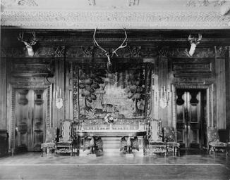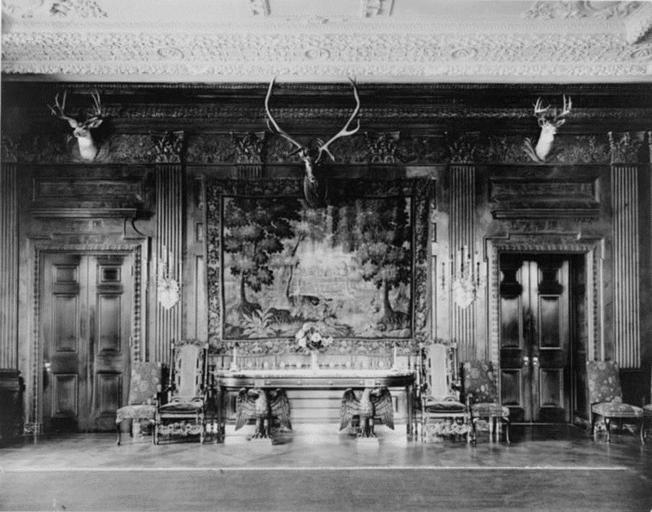 | Keywords: North wall of State Dining Room after 1902 expansion (cropped).jpg en North Wall of the State Dining Room following its 1902 expansion Architect Charles Follen McKim -- of McKim Mead and White -- removed the White House's grand staircase and almost doubled the size of the State Dining Room 1901-1902 Herter Brothers of New York City executed McKim's designs for the plasterwork and dark-oak woodwork Architect Stanford White designed the furniture which consisted of 50 Queen-Anne-style side chairs 6 William-and-Mary-style armchairs a long serving table supported by carved-eagle pedestals and two matching console tables The furniture was executed by A H Davenport and Company of Boston Library of Congress Frances Benjamin Johnston Collection http //www loc gov/pictures/item/92512306/ Creator Frances Benjamin Johnston 1902 PD-UD According to the http //lcweb2 loc gov/pp/fbjhtml/fbjres html Rights Information Page for the Frances Benjamin Johnston Collection at the Library of Congress There are no known restrictions on the photographs in the Frances Benjamin Johnston Collection State Dining Room McKim Mead White Herter Brothers A H Davenport and Company Theodore Roosevelt White House PD-USGov |