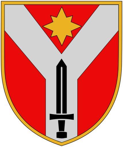 Keywords: Northeastern Defense District of Estonia emblem.svg en Emblem of Northeastern Defense District in Estonia et Kirde Kaitseringkonna embleem Kirde Kaitseringkonna embleem on põhikujult kuldse äärisega punane vapikilp millel on kujutatud hõbedane harkrist Harkristil asetseb üles suunatud teraga must mõõk Vapikilbi päises on kuldne kaheksaharuline täht Harkrist ning täht on ümbritsetud musta kontuurjoonega Harkrist tähistab väeosa paiknemist Kesk-Eestis teede ristumiskohas olevas Tapa linnas Kolme harusse lahknev harkrist sümboliseerib ühtlasi väeosa peaülesannet valmistada ette kolme relvaliiki kuuluvaid kaitseväelasi - suurtükiväelasi pioneere ja õhutõrjujaid Mõõk tähistab kaitseväge Täht on valguse ja hariduse märk teed näitav sümbol Embleemi originaalvärvid on must hõdedane kuldne ja punane http //www mil ee/im/sumboolika/cdr/tapavok cdr http //picasaweb google com/DeltaFly81/EestiEmbleemid 5183825688373772658 http //picasaweb google com/tarmoaasmae/KVEmbleemid 5341306638365539490 Unknown; Quibik <span class signature-talk >talk</span> 2010-03-20 Military insignia of Estonia PD-EE-exempt insignia |