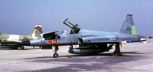 | Keywords: Northup F-5E 74-1549.jpg en Northrup F-5E Tiger II 74-1548 Delivered to the unit on 14 June 1976 It carried the silver/grey scheme The aircraft was placed in storage at RAF Alconbury in July 1988 but moved to RAF Kemble on 9 September 1988 It was eventually sold to the Moroccan AF as 01549 being delivered via Zaragoza AB Spain on 24 February 1990 The photo shows 01549 at Zaragoza at an earlier date on 29 July 1983 The centreline pylon carries stickers of the units visited by the aggressors It was rare to see an F-5E with centreline tank in place USAF Photo by Scott R Wilson 1983 Source United States Air Force Photo Alconbury Agressors Jan van Waarde United States Air Force other versions PD-USGov Northrop F-5 Tiger II F-5 Tiger II at RAF Alconbury 527th Tactical Fighter Training Agressor Squadron United States Air Force Units at RAF Alconbury |