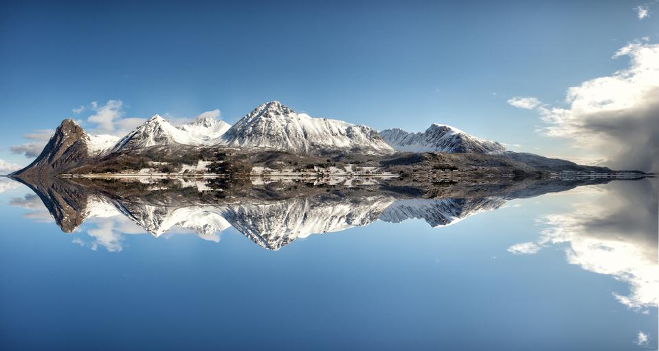 Keywords: norway fjord nature water view landscape arctic circle scandinavia ship travel mirroring loneliness mountain snow clear cold clouds wintry summit icy