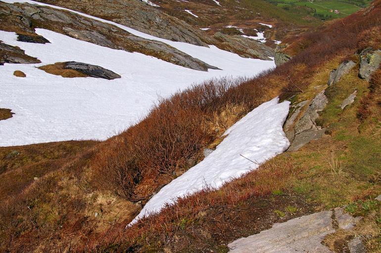 Keywords: norway fjordlandschaft mountains landscape nature hill snow summit spring holiday north clear air cold snowy white wintry snow cover eiskristalle grass