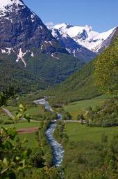 Keywords: norway fjordlandschaft river mountains landscape nature hill meadow green sky snow summit spring holiday flora north green landscape clear air