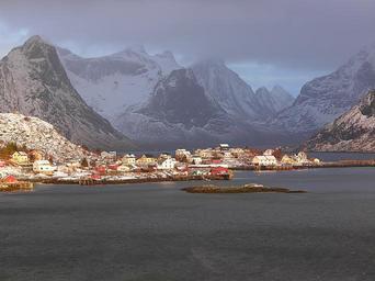 Keywords: norway reine lofoten sea house mountain
