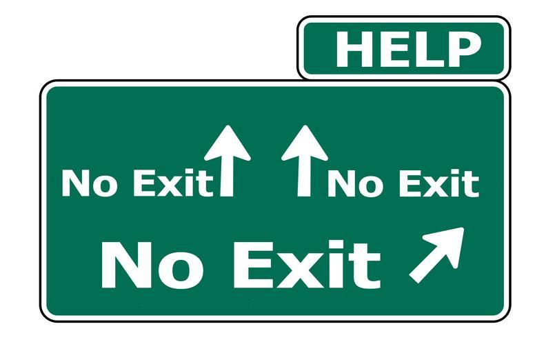 Keywords: note shield road sign output way out help no output no way out hopelessness green street sign
