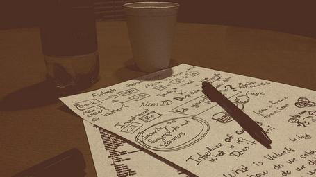 Keywords: notes pen write sheet paperwork table bottle cup