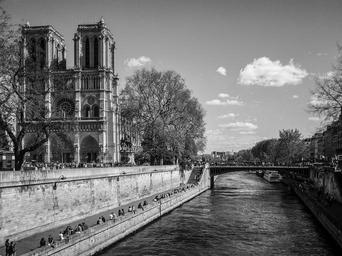 Keywords: notre damme cathedral france paris city center city notredam up architecture white scully shadow travel on black light old church religion christianity buildings landscape cityscape composition river seine