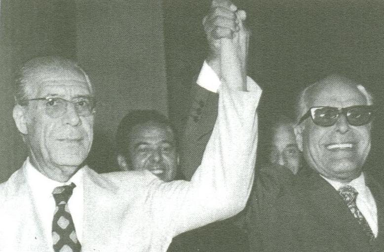 | Keywords: Nouira bourguiba 1974.jpg ar صورة للرئيس بورقيبة والوزير الأول الهادي نويرة أثناء مؤتمر الحزب الاشتراكي الدستوري المنستير 2 en President Bourguiba and Prime Minister Hedi Nouira during Socialist Destourian Party congress taken from Hédi Nouira Itinéraire d'un Intellectuel Militant et Homme d'Etat book Author 1974 PD-Tunisia Habib Bourguiba Hédi Nouira |