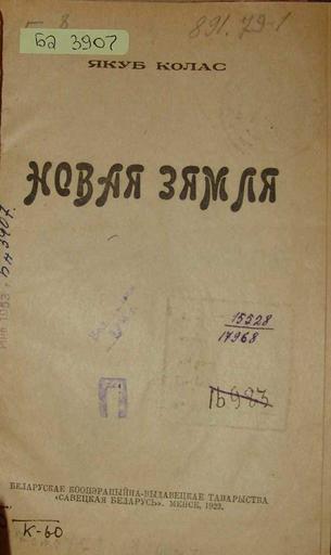 Keywords: Novaja ziamlia 1923.jpg en Yakub Kolas' Novaja Ziamla first issue book cover be-tarask Вокладка пе шага выданьня « овай зямлі» Якуба Коласа National Library of Belarus Jakub Kołas 1923 PD-text PD-Belarus Novaja ziamlia 1923 books