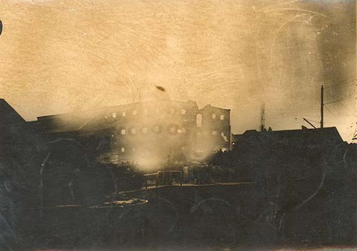 Keywords: fire blaze paul and vincent's paulandvincents chemical works chemicalworks chemicals factory sir john rogerson's quay sirjohnrogersonsquay john rogerson's quay johnrogersonsquay dublin ireland november 1920 1920s twenties irish independent irishindependent w.d. hogan wdhogan hogan collection hogancollection national library of ireland nationallibraryofireland outdoor Apologies for the abysmal quality of this one, but still like it for the sense of immediacy. W.D. Hogan took this photo of a blaze at Paul and Vincent's Chemical Works on Sir John Rogerson's Quay. This was the report of the fire in the Irish Independent on Monday, 22 November 1920: "A large section of Messrs. Paul and Vincent's chemical works, [Sir John] Rogerson's quay, Dublin, was destroyed by fire yesterday. Three sections of the Fire Brigade arrived, but the fire had got such a grip that their efforts were restricted to preventing it spreading. This occupied fully 4 hours. The damage runs into thousands. The Brigade remained at work during the night. Two firemen, Joseph Byrne and James Walshe, were caught by a falling wall. Mr. Byrne has his left arm fractured and both legs bruised. Mr. Walsh [sic] got an ugly wound on the head. They were promptly removed to Sir Patrick Dun's Hospital." Unsure whether this was normal practice for the Irish Independent, but the above article was immediately followed by an ad for insurance from Hibernian Fire and General Insurance of Dame Street, Dublin! Date: Sunday, 21 November 1920 NLI Ref.: HOG174 Apologies for the abysmal quality of this one, but still like it for the sense of immediacy. W.D. Hogan took this photo of a blaze at Paul and Vincent's Chemical Works on Sir John Rogerson's Quay. This was the report of the fire in the Irish Independent on Monday, 22 November 1920: "A large section of Messrs. Paul and Vincent's chemical works, [Sir John] Rogerson's quay, Dublin, was destroyed by fire yesterday. Three sections of the Fire Brigade arrived, but the fire had got such a grip that their efforts were restricted to preventing it spreading. This occupied fully 4 hours. The damage runs into thousands. The Brigade remained at work during the night. Two firemen, Joseph Byrne and James Walshe, were caught by a falling wall. Mr. Byrne has his left arm fractured and both legs bruised. Mr. Walsh [sic] got an ugly wound on the head. They were promptly removed to Sir Patrick Dun's Hospital." Unsure whether this was normal practice for the Irish Independent, but the above article was immediately followed by an ad for insurance from Hibernian Fire and General Insurance of Dame Street, Dublin! Date: Sunday, 21 November 1920 NLI Ref.: HOG174 |