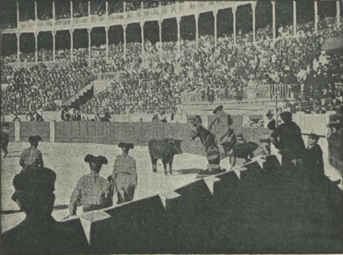 | Keywords: Novillada el 22 de noviembre de 1896 en la plaza de Toros de Madrid, de Franzen.jpg Novillada el 22 de noviembre de 1896 en la plaza de Toros de Madrid obra del fotógrafo Christian Franzen http //hemerotecadigital bne es/issue vm id 0004035654 page 7 Pan y toros Madrid nº 36 de 7 de diciembre de 1896 p 7 1896 Creator Christian Franzen PD-old-80-1923 Photographs by Christian Franzen Pan y Toros 1896 in Spain Plaza de toros de la Fuente del Berro | ||||