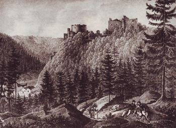 | Keywords: Nový hrádek u Znojma.jpg F A Hebera z roku 1848 ale jde o Nový Hrádek u Znojma V uvedené publikaci došlo k hrubému omylu nebyl jediný HOSÁK Ladislav; ZEMEK Metoděj etc Hrady zámky a tvrze v Čechách na Moravě a ve Slezsku Jižní Morava Praha Nakladatelství Svoboda 1981 s 177 - Pozn Toto není Nový hrad u Blanska ale Nový Hrádek u Znojma V uvedené publikaci došlo k hrubému omylu nebyl jediný František Alexandr Heber 1815 - 1849 1848 PD-old František Alexandr Heber Engravings of castles in the Czech Republic Nový Hrádek Lukov |