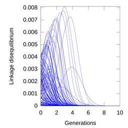 Keywords: Nrm ld.svg en Plot of 1 024 trajectories of linkage disequilibrium in a two-locus two-allele model of positive assortative mating own Trashbird1240 Biology diagrams Genetics Evolution