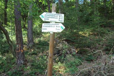 | Keywords: NS Dubsko 7.jpg cs Ukazatele na trase naučné stezky katastr Rozprechtice na Kokořínsku own Zákupák 2011-06-06 50 31 28 484 N 14 32 19 667 E region CZ Rozprechtice Dubá Naučná stezka Dubsko - Kokořínsko Hiking and footpath fingerposts in Dubá |