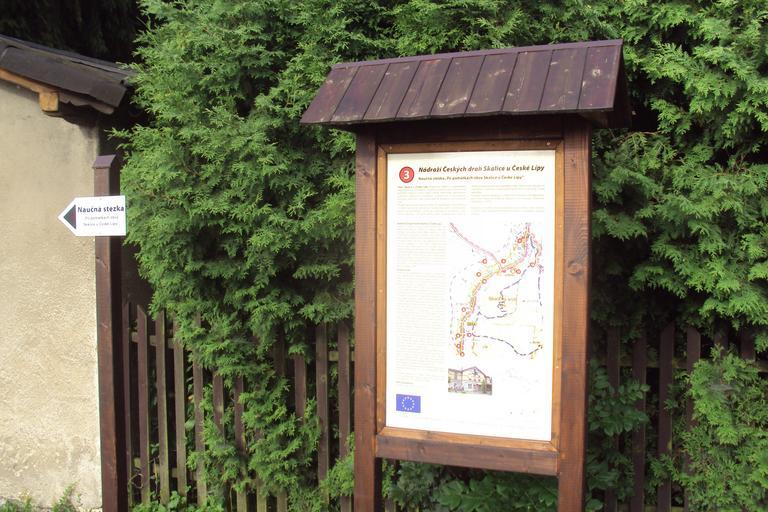 Keywords: NS Skalice 3.jpg cs Třetí zastavení před budovou nádraží own Zákupák 2012-07-08 Naučná stezka Po památkách obce Skalice u České Lípy Skalice u České Lípy train stations Information boards in Česká Lípa District