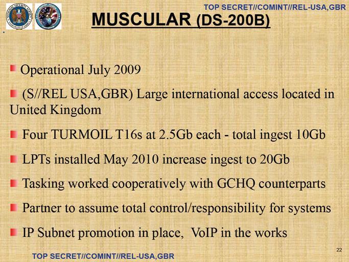 | Keywords: NSA-MUSCULAR-p22.png en MUSCULAR program Unclear possibly 2010 http //cryptome org/2014/01/nsa-sso-dk pdf Unknown NSA employee PD-USGov Uploaded with UploadWizard National Security Agency United States Government Communications Headquarters MUSCULAR 2013 Mass Surveillance Disclosures |