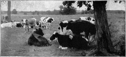 | Keywords: NSRW Dairy Industry 1.jpg <small>Copyright Brown Bros </small> ON A DAIRY FARM Here is where a dairy begins Here we see the dairy cows Holsteins and Jerseys resting in the shade after they have eaten their fill of the pasturage Next >> Image LA2-NSRW-3-0229 jpg |