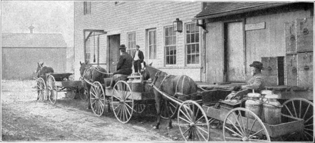 Keywords: NSRW Dairy Industry 3.jpg <small>From Brown Bros </small> Here we see farmers bringing their milk in cans to the receiving station Here it is received measured and paid for Next >> Image LA2-NSRW-3-0229 jpg