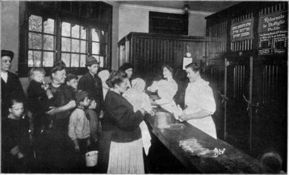 | Keywords: NSRW Dairy Industry 9.jpg <small>From Brown Bros </small> Here we see one of the milk depots for children established in New York by Nathan Strauss Here pure milk in sealed bottles is supplied at a minimum cost These depots are established at different points and are a great boon to poor people To the beginning >> Image LA2-NSRW-3-0232 jpg |