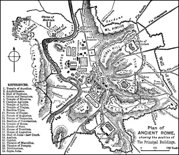 | Keywords: NSRW Plan of Ancient Rome.png text-align center Plan of<br>ANCIENT ROME <br>showing the position of<br>The Principal Buildings REFERENCES Temple of Aurelius Amphitheatre Hall of Neptune Isium and Serapium Temple of Minerva Campus Agrippæ Temple of Apollo Temple of Trajan Basilica Ulpia Forum of Trajan Forum of Augustus Forum of Vespasian Basilica of Constantine Temple of Rome House of Nero House of Domitian House of Augustus Hall of Julia ”Law Court Asylum Capitol Theatre of Marcellus Theatre of Pompey Diribitorium Septa Julia Image LA2-NSRW-4-0137 jpg Old maps of ancient Rome city |