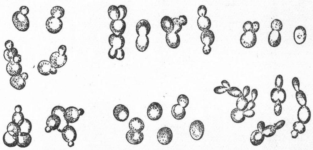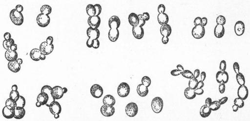 Keywords: NSRW Yeast.png 'Yeast reproducing by budding' from The New Student's Reference Work 1914 edition volume 5 page 137 LA2-NSRW-5-0137 jpg Microscopic images of yeast