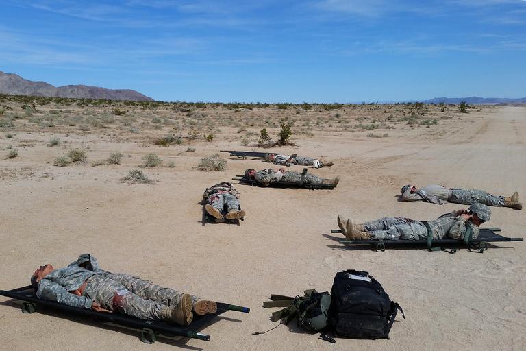 | Keywords: weed army community hospital weedarmycommunityhospital wach national training center nationaltrainingcenter ntc fort irwin fortirwin california col. jason wieman coljasonwieman command sgt maj. albert harris commandsgtmajalbertharris 2916th aviation battalion 2916thaviationbattalion emergency medical care emergencymedicalcare meddac rhc-c rhcc patient care patientcare soldier readiness soldierreadiness army training armytraining medical evacuation medicalevacuation medevac capt. sean donohue captseandonohue outdoor FORT IRWIN, Calif. -- The 2916th Aviation Battalion utilized an off-cycle window in their calendar March 20 - 23 to conduct brigade-level training in the National Training Center's "Box". The exercise culminated at the Fort Irwin Weed Army Community Hospital (WACH) March 23. The goal of the training is to test readiness as well as hone emergency medical skills among the participating service members. One simulation presented the participants with an Improvised Explosive Device (IED) attack on a troop transport that resulted in 16 casualties. The role players required triage at the point of injury in the training area, then airlifted back to the WACH on Fort Irwin for treatment. This was a large-scale training module that involved complex planning. To make the exercise as authentic as possible training units had no warning of what they would encounter throughout the course of the event and participants were alerted only as the scenario unfolded, just as if the casualties and events were real. Large casualty events of this kind take a special type of planning coordination, material and geography to execute, and even more consideration to undertake, which makes the NTC an ideal venue for such training. The 2916th assumed the role of air medevac, requiring multiple airlifts to bring all casualties back to the WACH, where staff members prioritized, stabilized and treated the mock casualties, then prepared to fly any they determined needing specialized care beyond WACH capabilities to other nearby available medical facilities for more extensive treatment. To learn more about the people and facilities of the National Training Center and the Weed Army Community Hospital visit their official websites at www.irwin.army.mil or www.irwin.amedd.army.mil Photo by Captain Sean Donoghue for WACH Public Affairs (Released), FORT IRWIN, Calif. -- The 2916th Aviation Battalion utilized an off-cycle window in their calendar March 20 - 23 to conduct brigade-level training in the National Training Center's "Box". The exercise culminated at the Fort Irwin Weed Army Community Hospital (WACH) March 23. The goal of the training is to test readiness as well as hone emergency medical skills among the participating service members. One simulation presented the participants with an Improvised Explosive Device (IED) attack on a troop transport that resulted in 16 casualties. The role players required triage at the point of injury in the training area, then airlifted back to the WACH on Fort Irwin for treatment. This was a large-scale training module that involved complex planning. To make the exercise as authentic as possible training units had no warning of what they would encounter throughout the course of the event and participants were alerted only as the scenario unfolded, just as if the casualties and events were real. Large casualty events of this kind take a special type of planning coordination, material and geography to execute, and even more consideration to undertake, which makes the NTC an ideal venue for such training. The 2916th assumed the role of air medevac, requiring multiple airlifts to bring all casualties back to the WACH, where staff members prioritized, stabilized and treated the mock casualties, then prepared to fly any they determined needing specialized care beyond WACH capabilities to other nearby available medical facilities for more extensive treatment. To learn more about the people and facilities of the National Training Center and the Weed Army Community Hospital visit their official websites at www.irwin.army.mil or www.irwin.amedd.army.mil Photo by Captain Sean Donoghue for WACH Public Affairs (Released), |